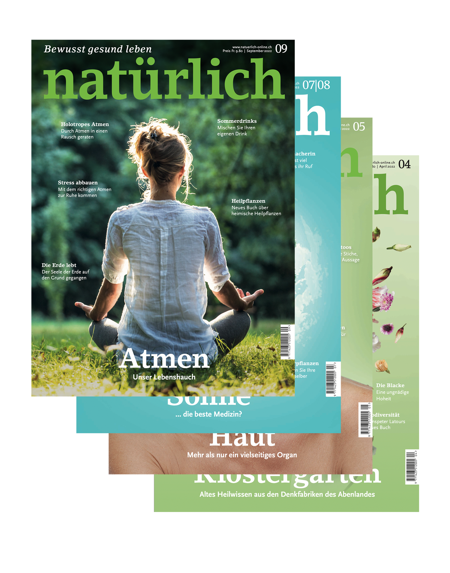 Das Magazin «natürlich» ist das Stimme in der Schweiz für alle Belange der Naturheilkunde. Unabhängig und mit grossem Nutzwert für interessierte Leserinnen und Leser berichtet es über Therapien, Methoden, Anwendungen, Kräuter und Mixturen. Mit seinen ergänzenden Artikeln über gesunde Ernährung und die wohltuende Wirkung der Natur ist es eine Inspirationsquelle für alle, die bewusst und gesund leben wollen.