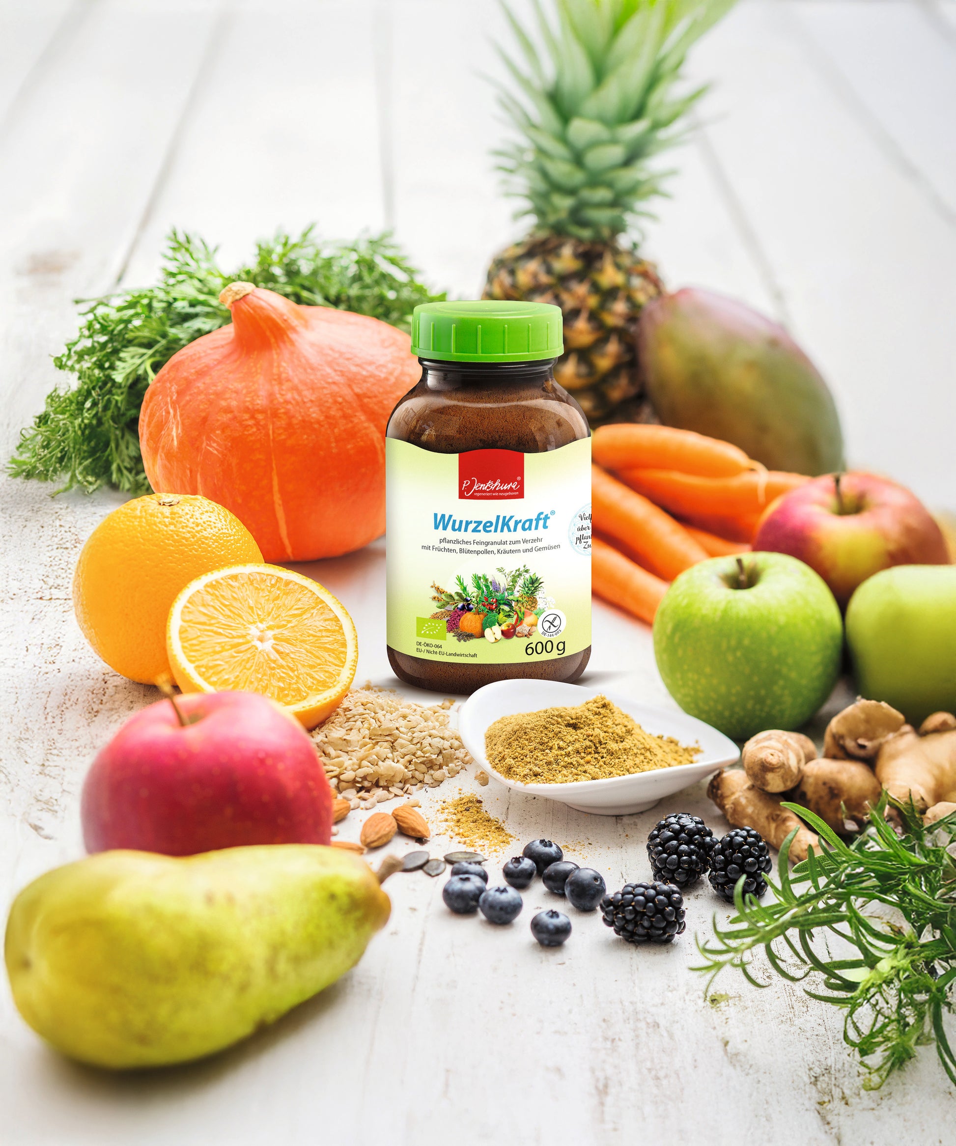 WurzelKraft® von P. Jentschura ist ein Nährstoffversorger aus über 100 sorgfältig ausgewählten pflanzlichen Zutaten. Ein wertvoller Mix, der unter dem Etikett eines hochwertigen Biolebensmittels den Reichtum der Natur in einem Glas bündelt.